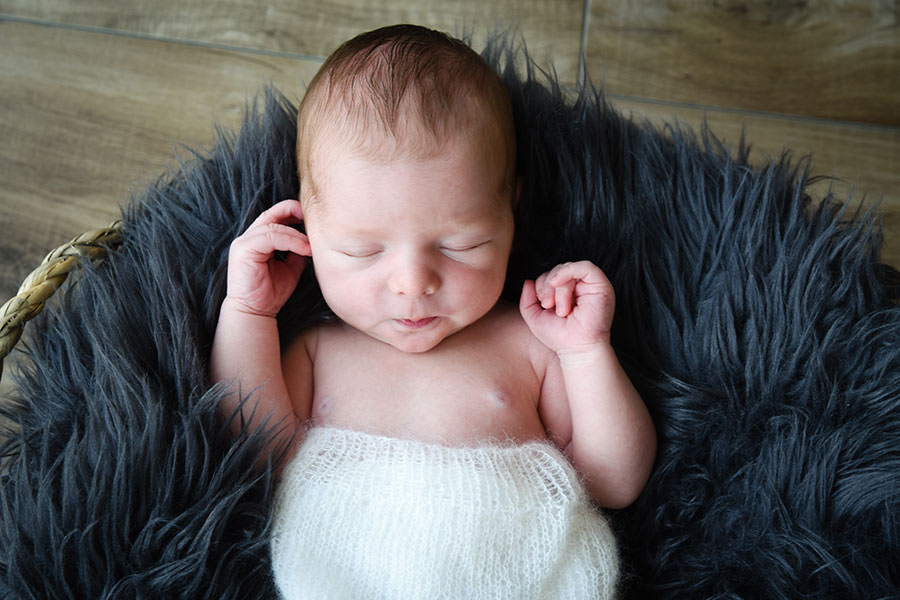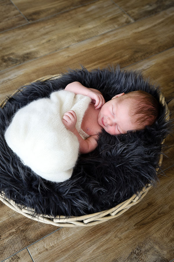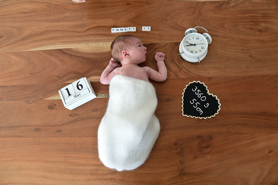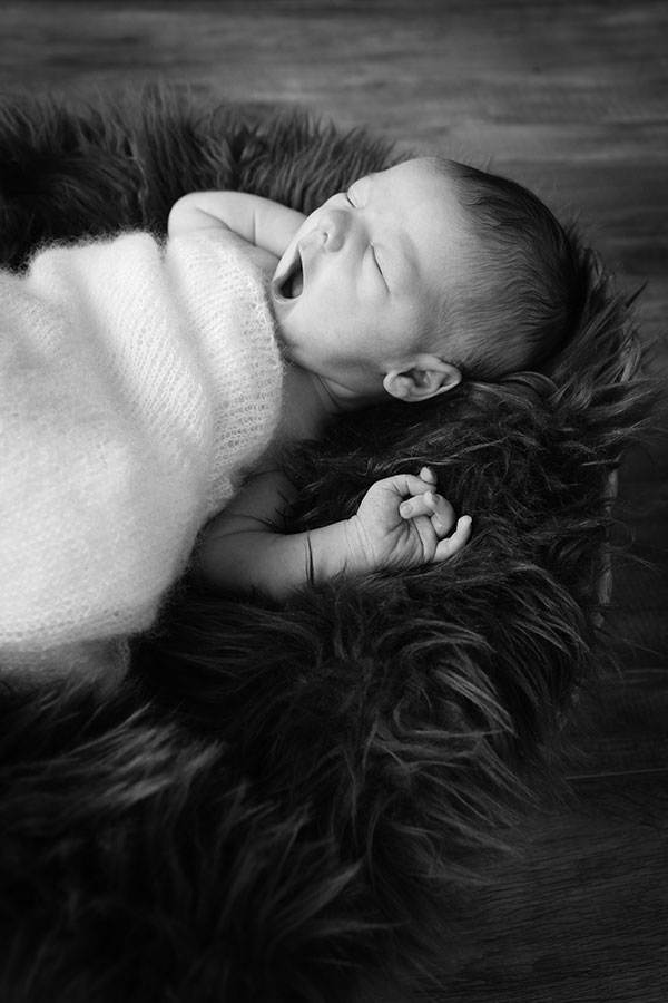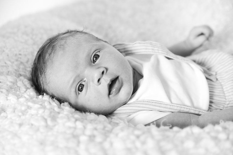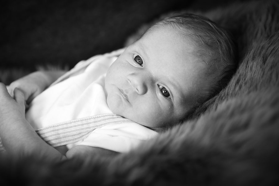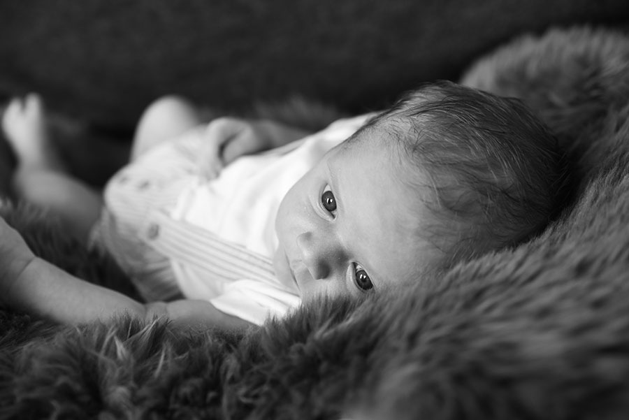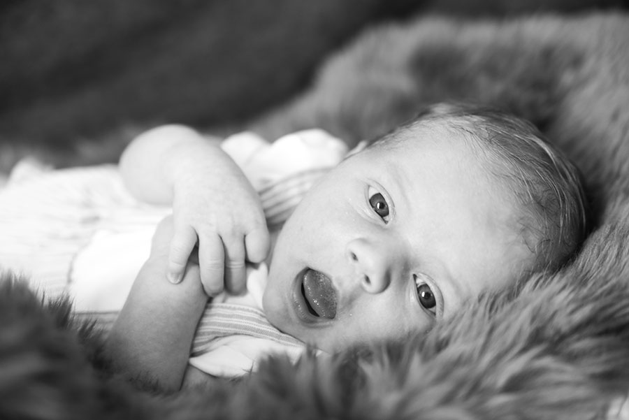 Einige Tage nach diesem Shooting war es dann so weit: der Leonard ist da! Und er hat Haare, viele Haare – so putzig! Ein ganz entspannter, kleiner Mann.